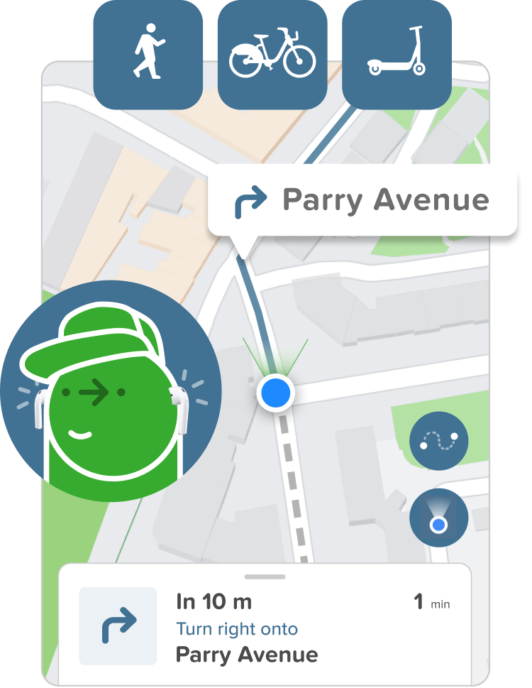 When you press GO, each turn will be clearly communicated and displayed on the map as you move around the city. If you make a detour, our automatic rerouting will figure out how to update - and keep talking to you.