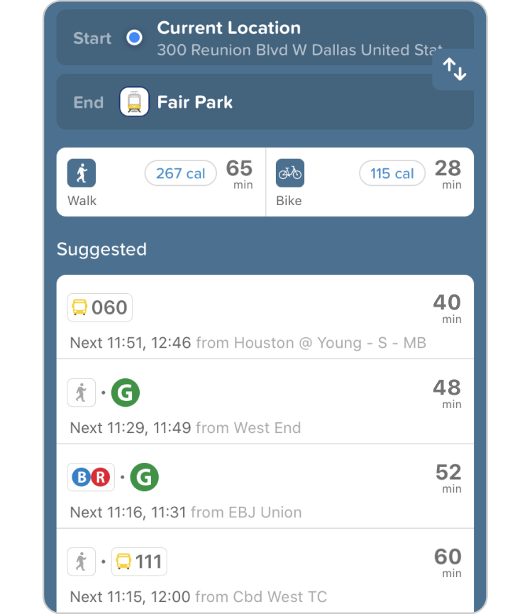 We've got (literally) all of the different transport options in Dallas, Fort Worth, and beyond, all in one place! Choose what works best for you, whether you're commuting to work or on a quick trip over to the fountains and greenery at Fair Park ⛲️